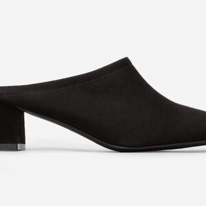 Called the Day Heel Mules, the shoes have the closed-in-front, open-in-back silhouette with a 2" suede covered heel.