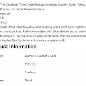 Everlane The Daytripper Tshirt Dress Pockets Oversized Medium Butter Yellow