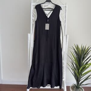 Everlane Dress Medium The Satin V Neck Maxi Minimalist Quiet Luxury Old Money