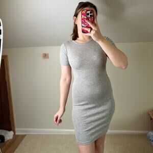 Everlane Gray Bodycon Midi Dress Crew Neck Short Sleeve