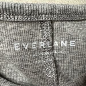 This Everlane dress in a sleek gray hue is designed for casual occasions with its bodycon fit and midi length. Featuring a crew neck and short sleeves, it offers a minimalist and comfortable style perfect for everyday wear.