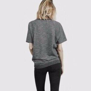 Everlane Marled Gray Tunic Short Sleeve Sweatshirt• 100% cotton• raglan-style short sleeve• charcoal heather gray with a darker gray trim at the neck and banded hem.• Round neck