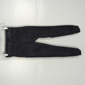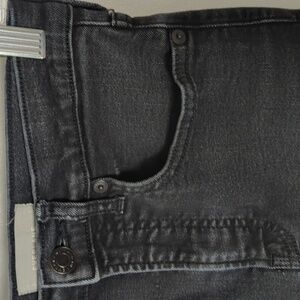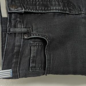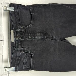 Black with some fading. Five pockets. Zip fly, button closure. No stains, rips, or fraying. Laid flat waist: 12.5in. Rise: 10in. Inseam: 24.5in.