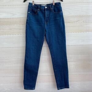 Super cute blue jeans, dark wash from Everlane. Size 26. These are high-rise skinny jeans.