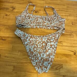 Everlane Honey Floral High Cut Square Neck Bikini Swimsuit Set Size Large