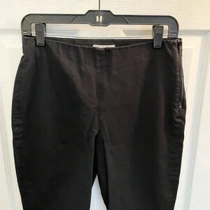 The side-zip stretch cotton pant has a flattering high waist and a skinny cut.