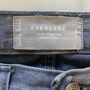 Elevate your style with these chic and sustainable Everlane The 90s Cheeky Jeans. Made with organic cotton and featuring a light gray wash, these high-rise cropped jeans are perfect for any season. With a button fly closure and a waist size of 29 inches, these jeans are a must-have for any fashion-forward woman.