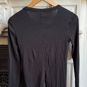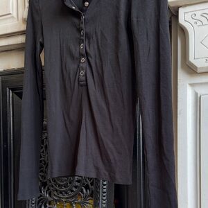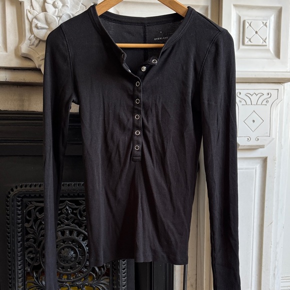 This long-sleeve, slim fit henley features a crew neckline with a curved trim and front button placket. Made with ribbed Supima® cotton. Wear under a blazer with relaxed pants, tuck into high-rise denim, or throw on with your favorite skirt.