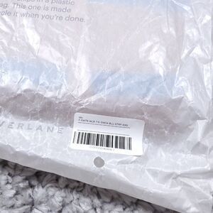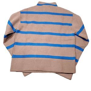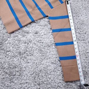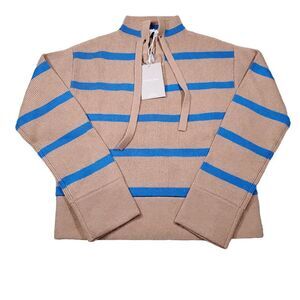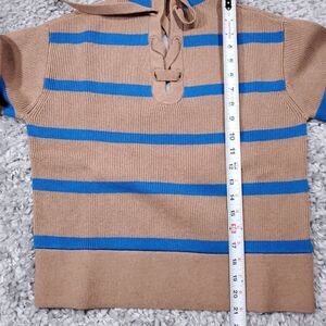Women's Everlane Lace Up Smock Sweater with lace up neckline. Chestnut brown and blue stripes. New with tags. Wool blend. Women's size XXS or 2XS, real measurements shown in photos with sweater laid flat: