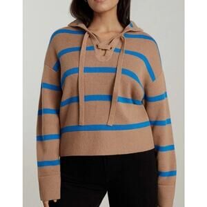 Everlane Lace Up Smock Sweater Knit Chestnut Brown Blue Striped Wool NWT