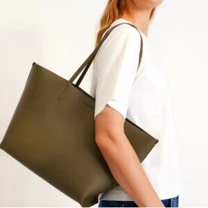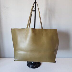 "NEW" Gorgeous Olive Green Leather Tote By Everlane. Dual Top Handles w/10.6" Drop, Unlined Interior with Large Leather Slip Pocket, Snap Closure, Reinforced Leather at Bottom Sides for More Structure/Stands Up When Filled, 100% Italian Leather/ Made in Italy, Bag Measures approx. 12" T X 20" W X 7" D, Can Hold a 15" Laptop, New, Never Worn, Tag, Minor Creasing/Markings Normal, Retail Environment & Pack-able:) Rt. 298.00 approx. * Perfect Travel, Business, Vacation Pack-able Tote.
