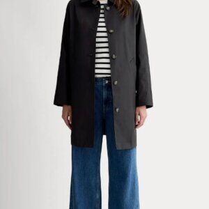 The classic Mac Coat in organic cotton. An easy addition to your outerwear lineup, the Mac Coat has front button fastenings, a collar with stand button closure details, slanted welt pockets, a back vent, and is half lined.