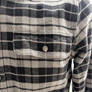 Everlane Men’s Large Plaid Flannel Shacket Jacket — 100% Cotton, Gray & Black
