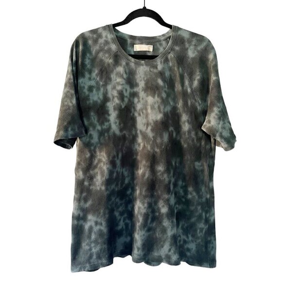 Everlane men's green tie dye short sleeve waffle knit shirt. Shirt is made of 100% organic cotton and is a man's size large. Care tag has been removed but it's machine wash cold.