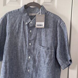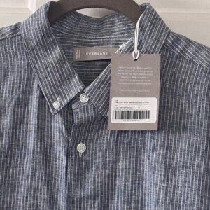 Everlane Men's The Linen Standard Fit Short Sleeve Shirt Blue White Size Medium