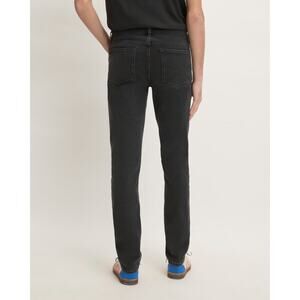 These men's skinny leg denim jeans from Everlane are a washed black color and a classic skinny style. 5 pocket design. Cotton with stretch. Casual jeans for an everyday classic look.