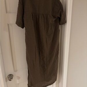 Chic brown dress with button-up front. Features a textured fabric. Ideal for versatile styling.
