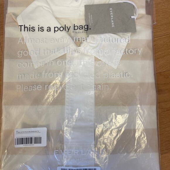 Everlane Organic Cotton Short Sleeve Polo Dress Beech Bone Tan Stripe Small -New with tags