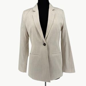 New without tags and never worn. This polished yet relaxed blazer features a modern oversized fit, notched lapels, front button closure, flap pockets, and a fully lined interior for easy layering. Crafted with a sustainable TENCEL™ lyocell and cotton blend shell with recycled polyester lining—perfect for workwear, capsule wardrobes, and minimalist styling year-round.