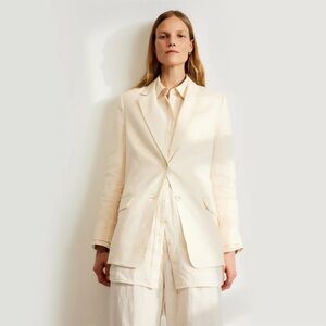 Everlane Oversized Linen Blazer Ivory White Single Breasted Jacket Size 16 NWOT
