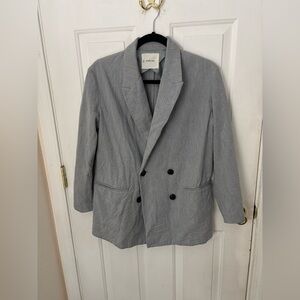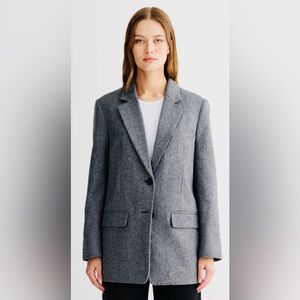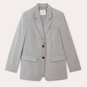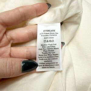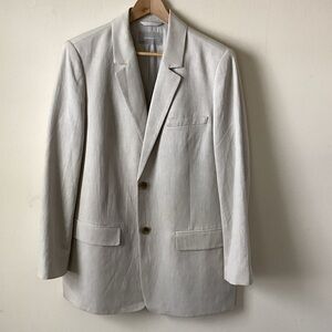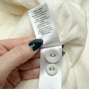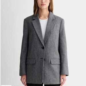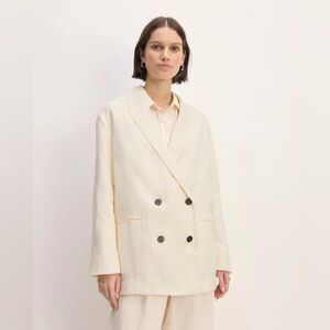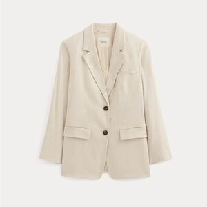 Elevate your wardrobe with this Everlane Oversized Linen Blazer in a soft ivory shade. Crafted in a heavyweight stretch linen blend, this jacket features a single-breasted silhouette, two-button closure, flap pockets, cuff buttons, and full lining for a polished, structured look. The relaxed oversized fit makes it perfect for layering and effortless year-round styling.