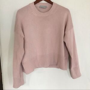 Stunning, lovely Midweight sweater in a quality cotton knit, more of a pale pink/peach color in person. Such a beautiful design and drape. No flaws, washed in cold, dried flat (this washes beautifully!) Easy cotton sweater with an oversized cropped fit and an elegant drape—so you can wear it with pretty much everything in your closet.
