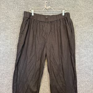 Everlane Pants Womens XXL Black Linen Wide Leg Pull On Elastic Waist Boho Casual