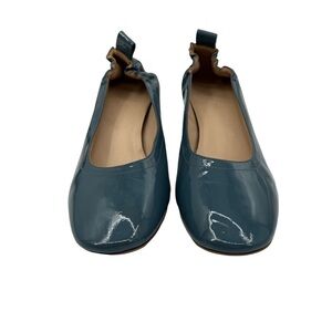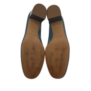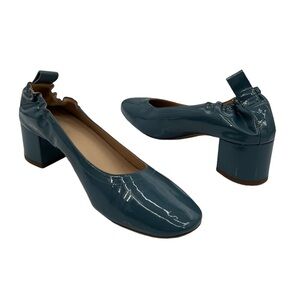 Everlane Patent Blue Green Closed Square Toe Block Heels Size 8 1/2 Women's