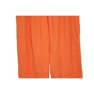 The Everlane Pull On Pants in size Large are made of Viscose and Acetate materials, offering a relaxed fit with a wide-leg and cropped style. These orange pants feature a solid pattern, elastic waistband, and pockets for convenience. Ideal for travel or casual wear, they have a high rise and a preppy look that is perfect for summer, fall, or spring seasons. The pants are designed by the brand Everlane, making them a stylish choice for a colorful, bohemian, or tropical-themed outfit.