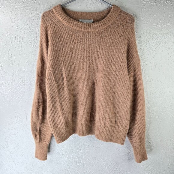 Everlane Pullover Sweater Tan Ribbed Alpaca Merino Wool Cozy Minimalist Preppy