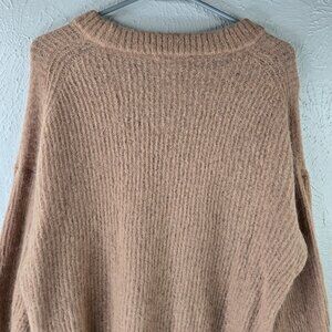 Pullover Sweater Tan Ribbed Alpaca Merino Wool Cozy Minimalist Preppy (H801)