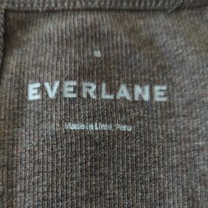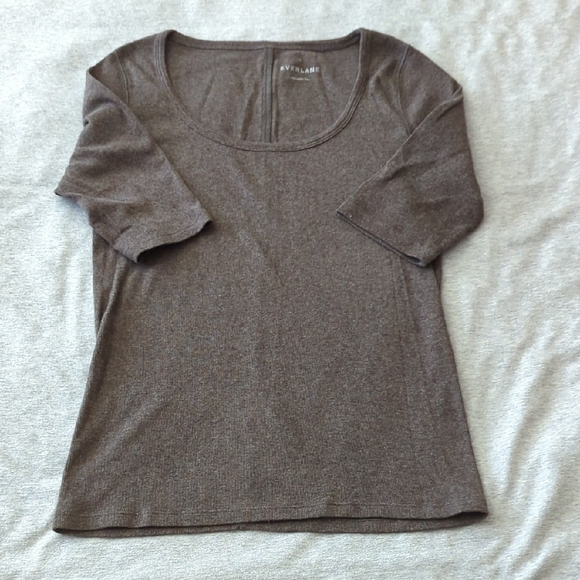 Brown ribbed shirt from Everlane. Fitted fit. Soft and comfortable. Not a crewneck, neck is a bit wider than crewneck.
