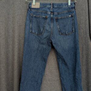 Washed indigo, relaxed straight fit. Organic cotton. Smoke-free, pet-free home