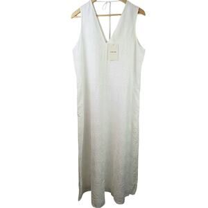 Everlane SZ L The Linen Eyelet Maxi Dress In White NWT