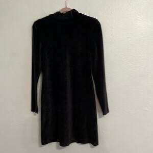 Everlane SZ S Black Velvet L/S Funnel Neck pull on Dress Whimsigoth Minimalist