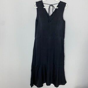 Everlane Satin Black Maxi Dress Womens Small Sleeveless V Neck Pockets