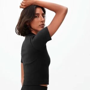 Everlane Seamless Tee Black Shirt Short Sleeve Compression Crop Top NEW