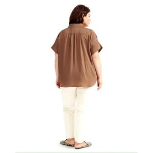 Everlane Shirt 00 2XS Women Brown Coco Button Up Short Sleeve Japanese Go Weave