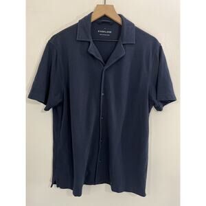 Everlane Shirt M Button Camp Knit Collared Preppy Rockabilly Elvis Grandpa Luxury Old Money Minimalist Retro Blue.