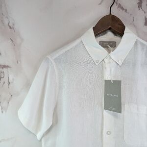 Everlane Shirt Men White Linen Short Sleeve Slim Fit Button Down