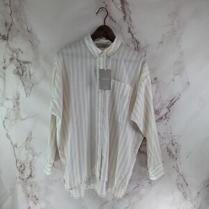 Everlane Shirt Women Striped Button Silky Cotton Relaxed Oversized Sand White