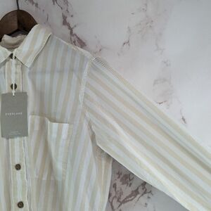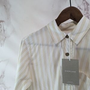 Everlane Shirt Womens Striped Button Up Silky Cotton Way Short Crop Sand