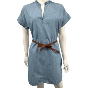 Everlane Short Sleeve Denim Dress with Pockets! One pocket on each side- pretty deep pockets too! Belt in photo is just to show what you can pair with the dress. Size 0. Happy to give measurements upon request!