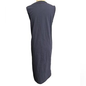 Simple, but beautiful sleeveless navy blue dress with crewneck. Side slit on the bottom right of the dress makes it easy to move around. I love it with this embroidered Lucky Brand cardigan I’ve styled it with (also for sale).