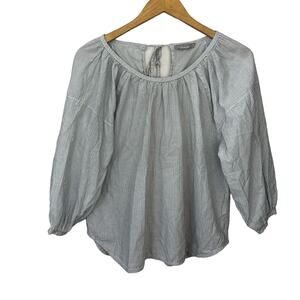 Everlane Small Boho Striped Top Womens White Cotton Blouse Balloon Sleeves
