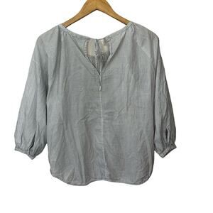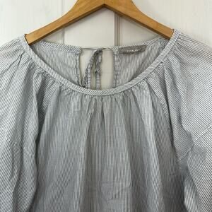Everlane Small Boho Striped Top Womens White 100% Cotton Blouse Balloon Sleeves Keyhole Back Tie Closure Lightweight Soft Comfort Minimalist Casual