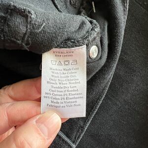 Elevate your wardrobe with these stylish Everlane black jeans, perfect for work or school. Made from comfortable and breathable cotton fabric, these jeans feature a mid-rise fit with a regular cut for a flattering look. The ankle length and raw hem detail add a touch of grunge to the overall design, making them a trendy addition to any outfit. With functional pockets and a size of 26, these jeans are both practical and fashionable. The solid black color and Everlane brand ensure that you're wearing quality clothing that will last. Add these jeans to your collection today and step up your fashion game!