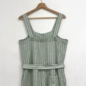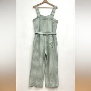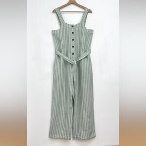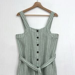 Stylish striped jumpsuit by Everlane. Features button front and tie waist. Perfect for casual outings.