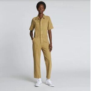 🌼Everlane Supersoft Denim Jean Coverall Jumpsuit Spring Fennel Tan Green 10🌼