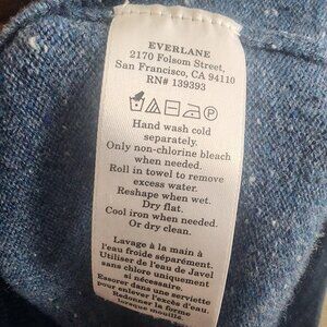Brand/label details visible: EVERLANE; care/content tags; Everlane address tag (2170 Folsom Street, San Francisco, CA 94110)